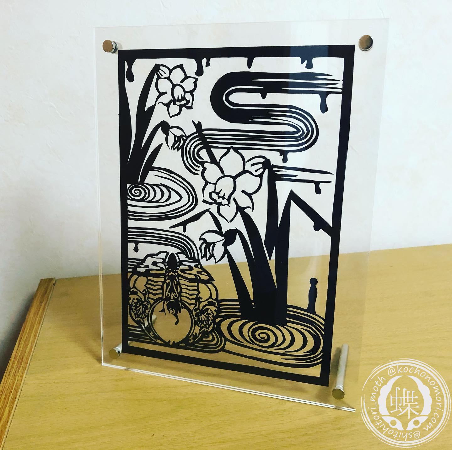作品は、【タテハチョウ科の蝶】と喇叭水仙をモチーフに、