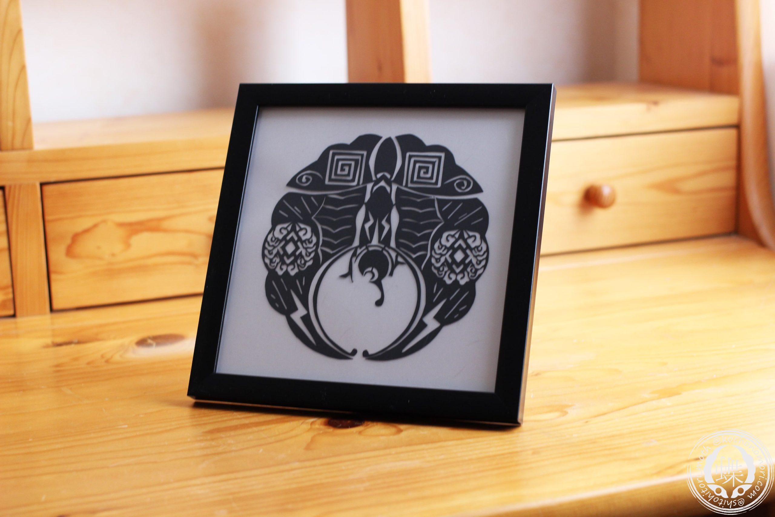 創作和文様【雷雨紋】を背景として構成した切り絵作品です。