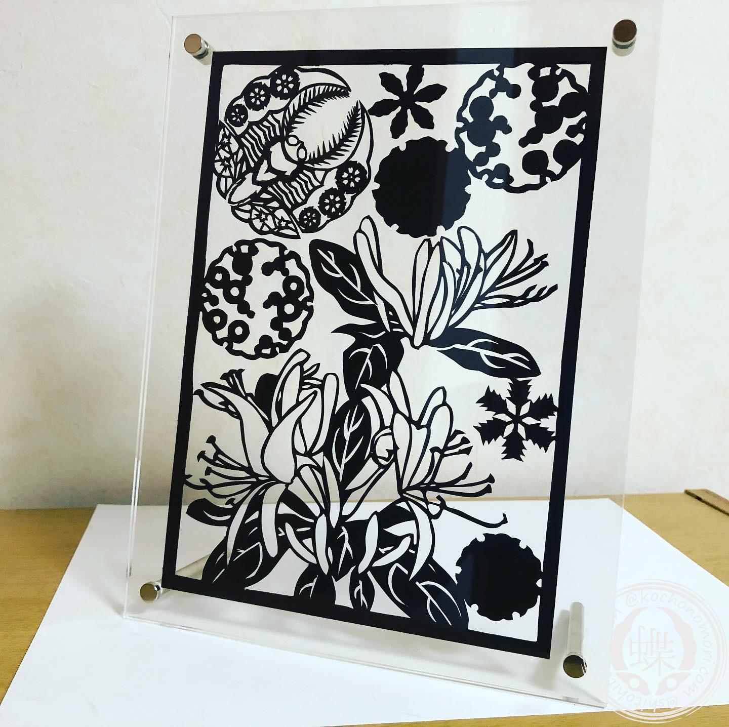 創作和文様【霰吹雪】を背景として構成した切り絵作品です。